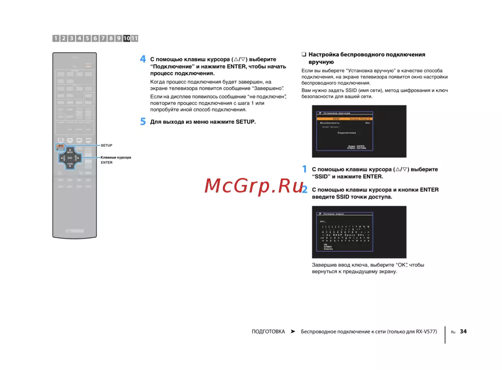 ПОДГОТОВКА ➤ Беспроводное подключение к сети (только для RX-V577) Ru 34