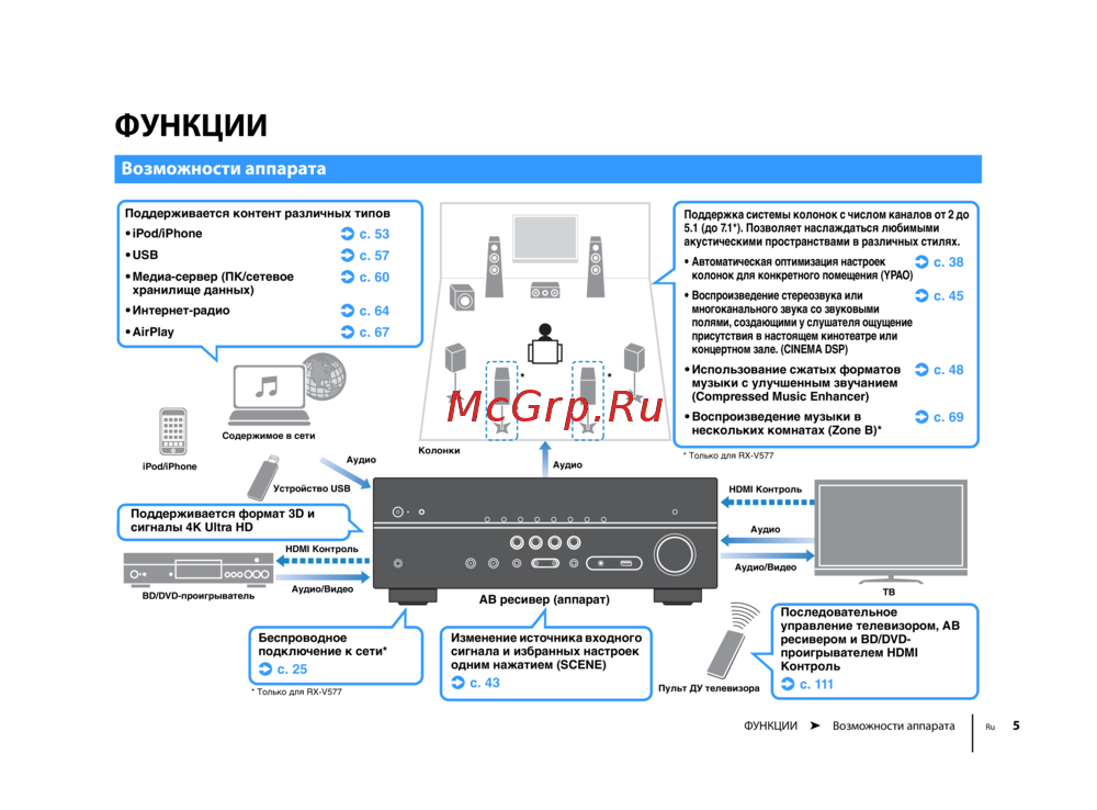 ![Yamaha RX-V577 Black [5/123] Функции](/views2/1105462/page5/bg5.png)