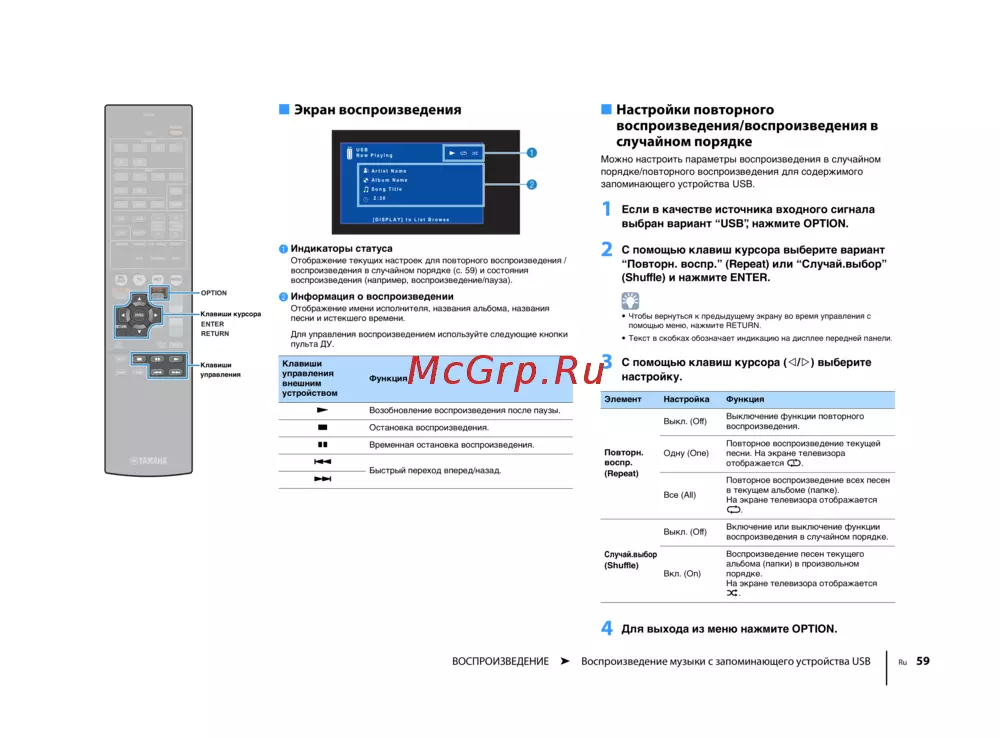 Yamaha RX-V577 Black — управление воспроизведением музыки с USB-накопителя [59/123]