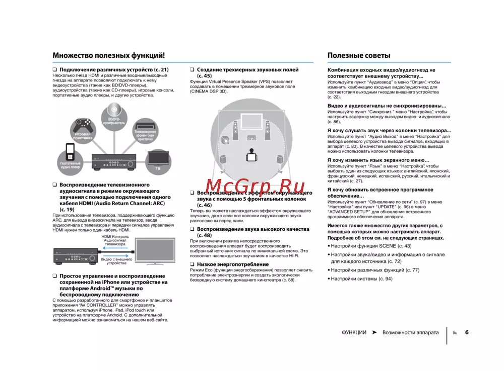 ФУНКЦИИ ➤ Возможности аппарата Ru 6
