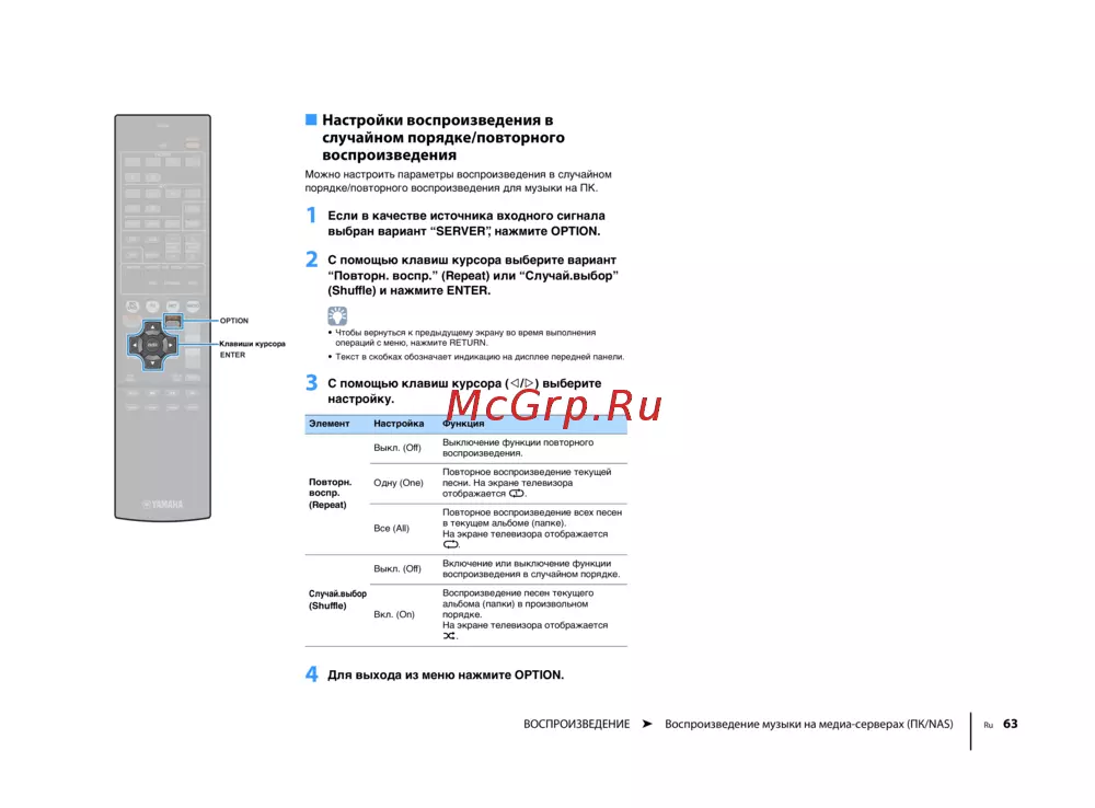 Yamaha RX-V577 Black [63/123] С помощью клавиш курсора выберите вариант повторн воспр repeat или случай выбор shuffle и нажмите enter