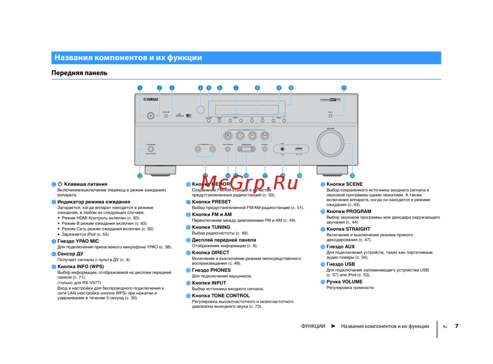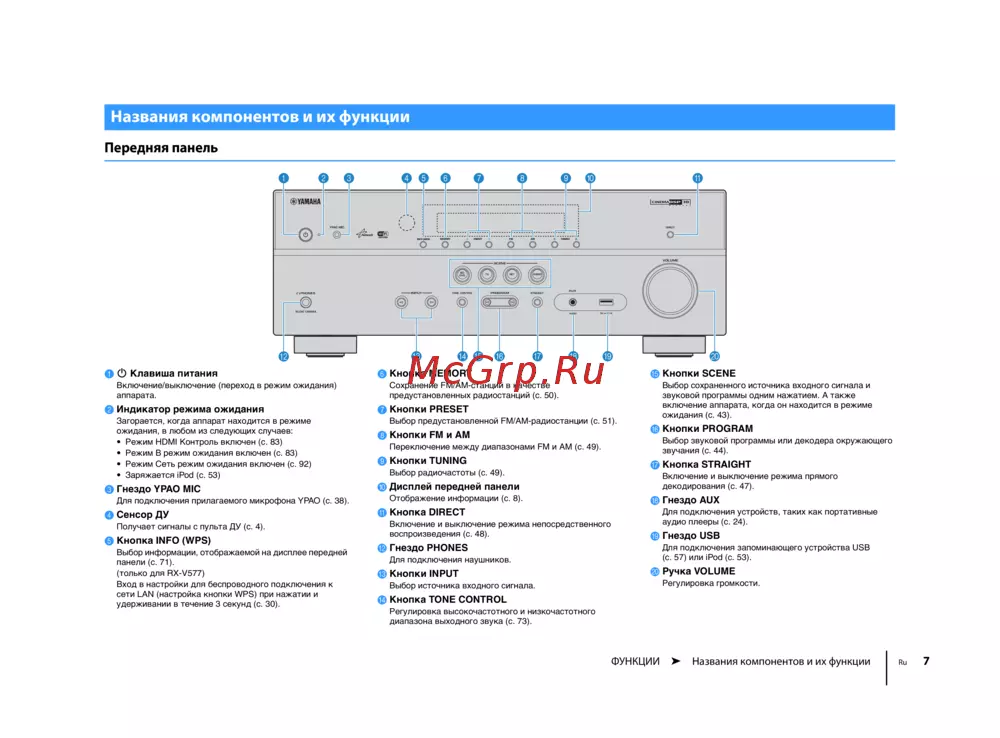 ФУНКЦИИ ➤ Названия компонентов и их функции Ru 7