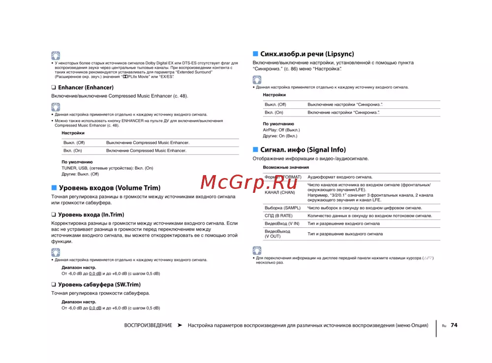 • Данная настройка применяется отдельно к каждому источнику входного сигнала.