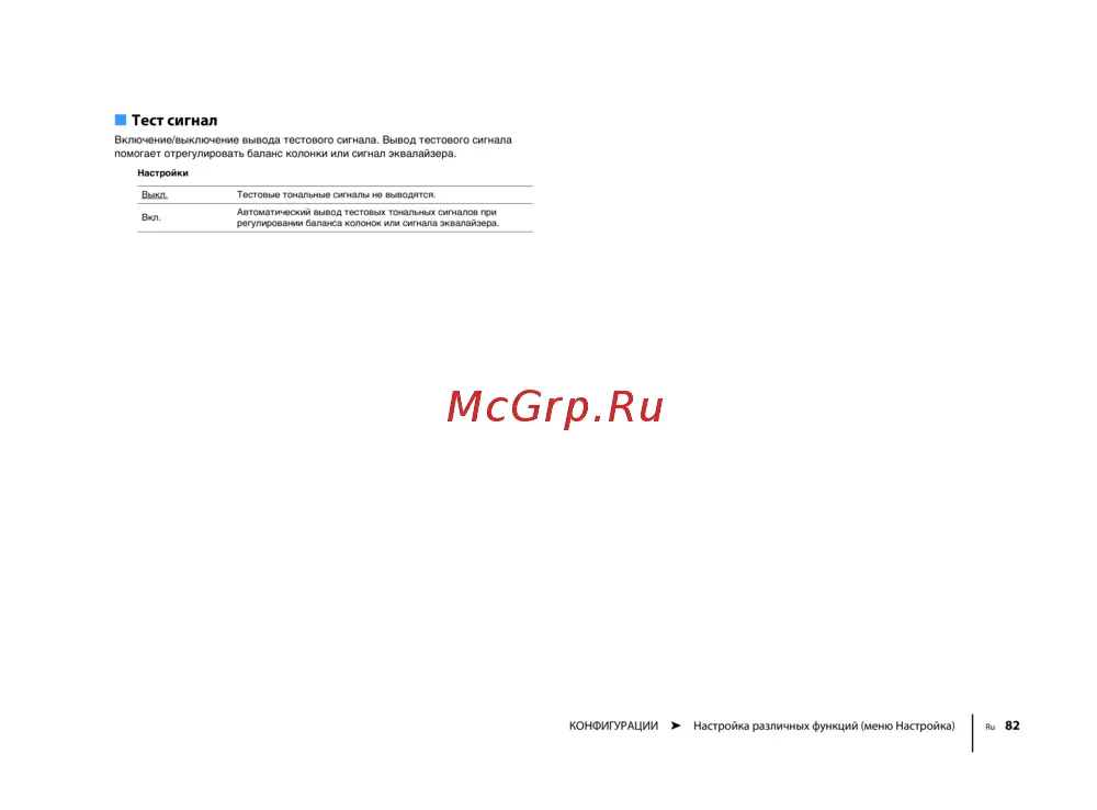 КОНФИГУРАЦИИ ➤ Настройка различных функций (меню Настройка) Ru 82