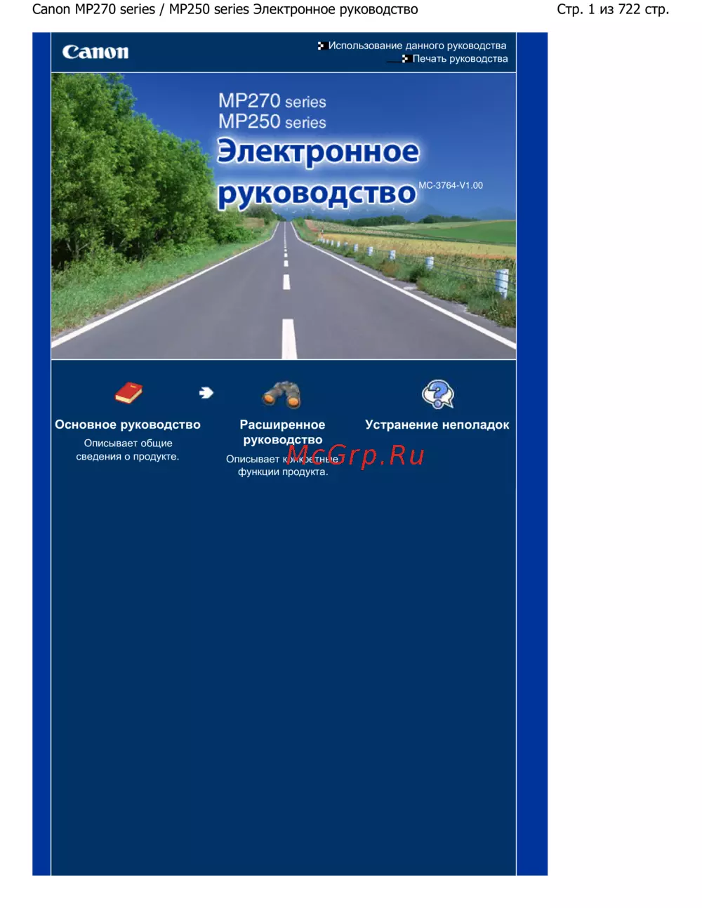 Стр. 1 из 722 стр.Canon MP270 series / MP250 series Электронное руководство