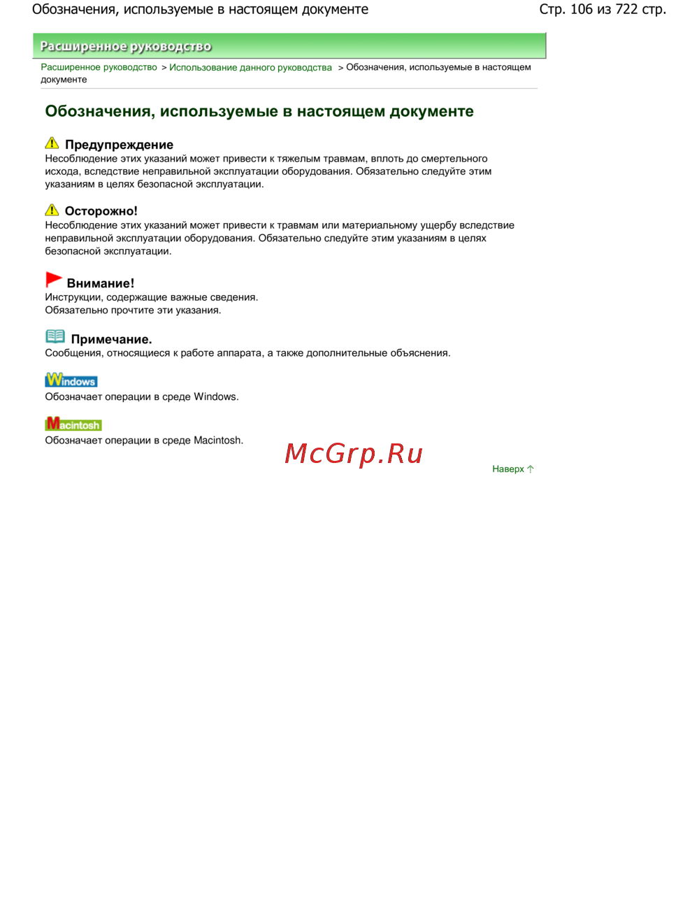 Canon Pixma MP 272 — обозначения в руководстве по безопасности и эксплуатации оборудования [106/722]