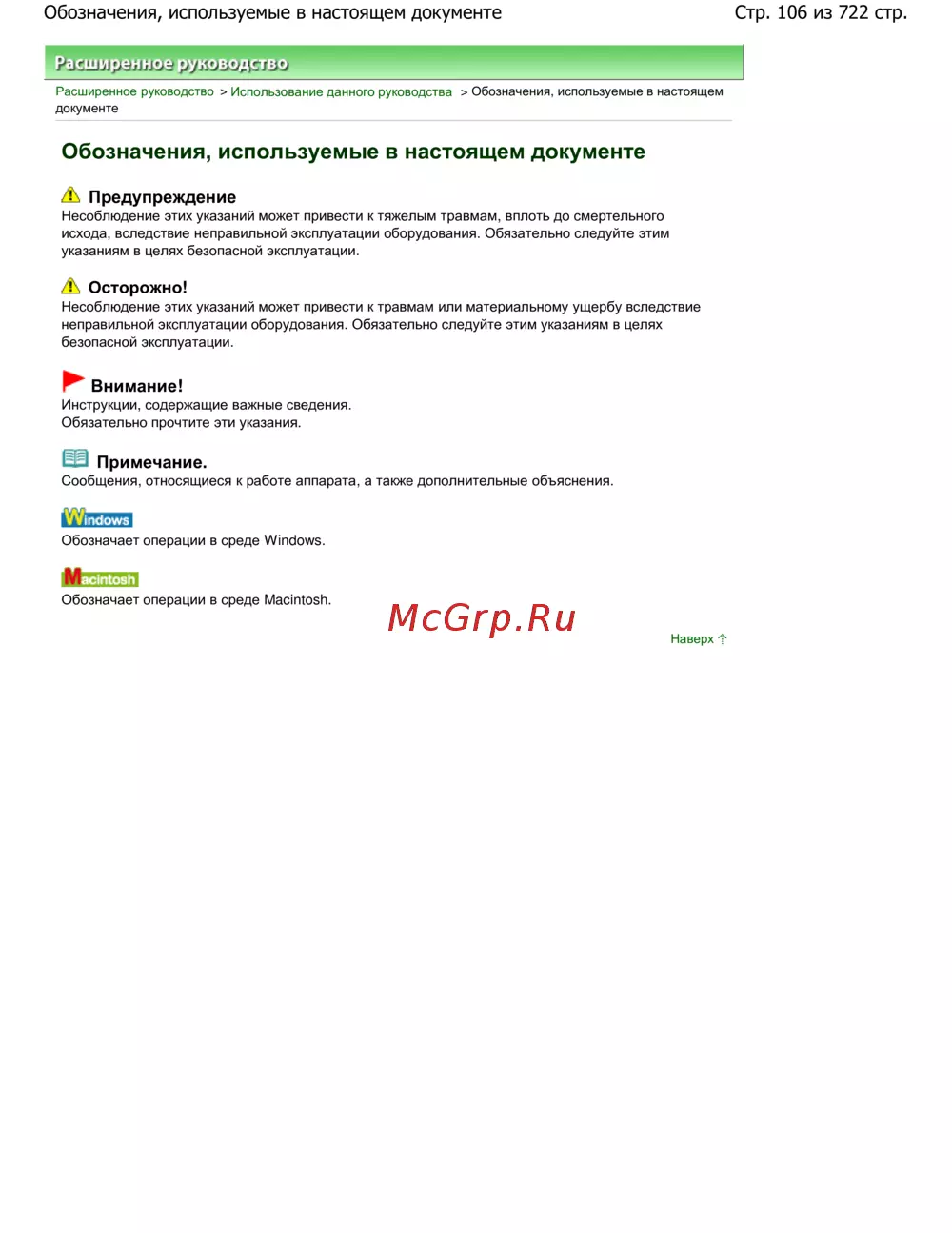 Стр. 106 из 722 стр.Обозначения, используемые в настоящем документе
