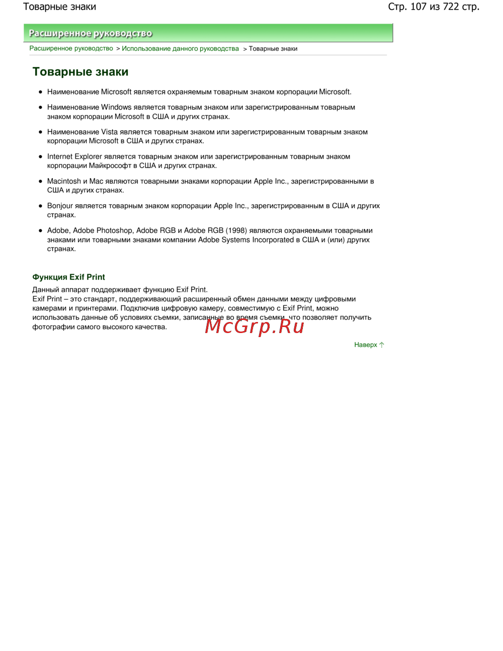 Canon Pixma MP 272 — руководство по товарным знакам и функциям печати Exif Print [107/722]