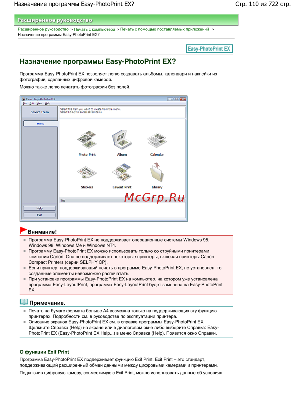 Стр. 110 из 722 стр.Назначение программы Easy-PhotoPrint EX?