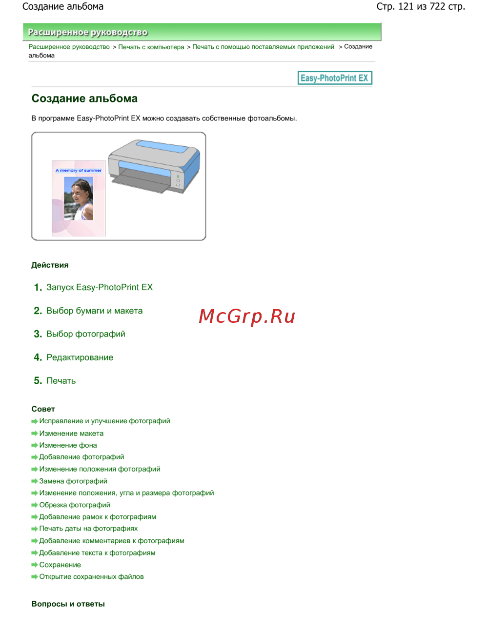 Canon Pixma MP 272 — создание фотоальбомов: пошаговое руководство для печати с компьютера [121/722]