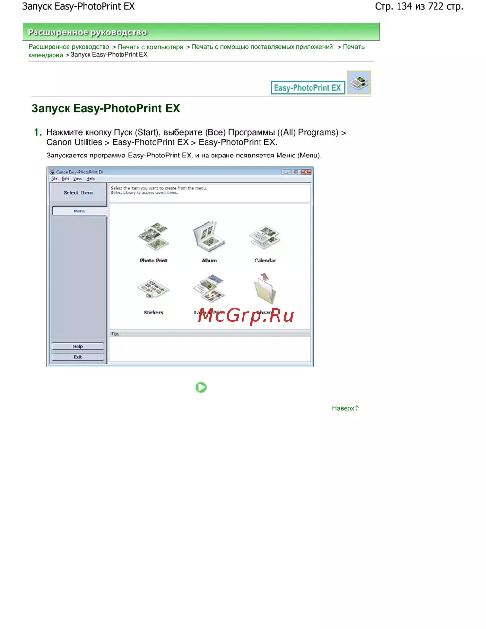 Стр. 134 из 722 стр.Запуск Easy-PhotoPrint EX