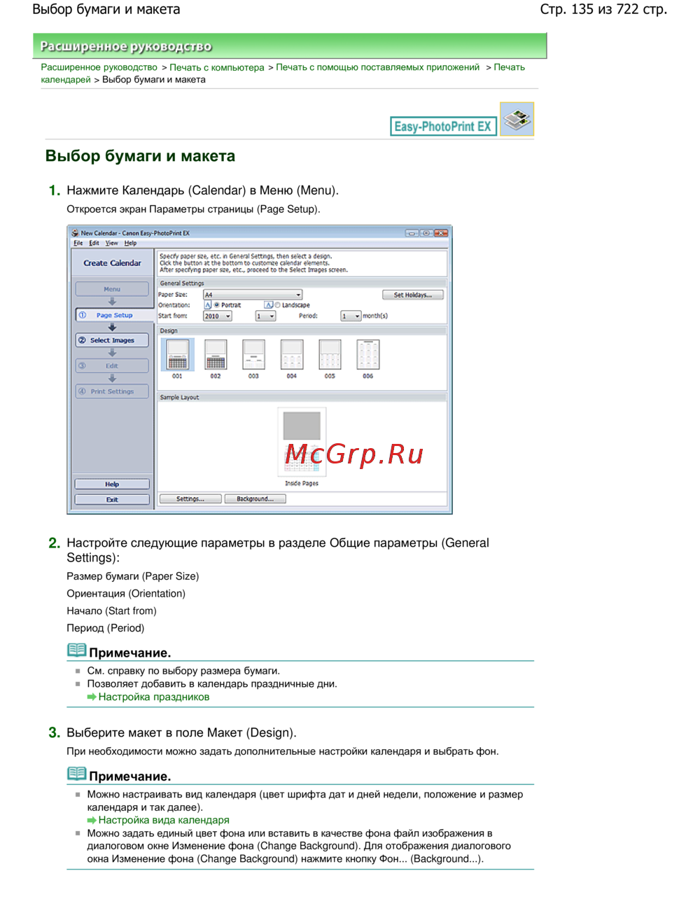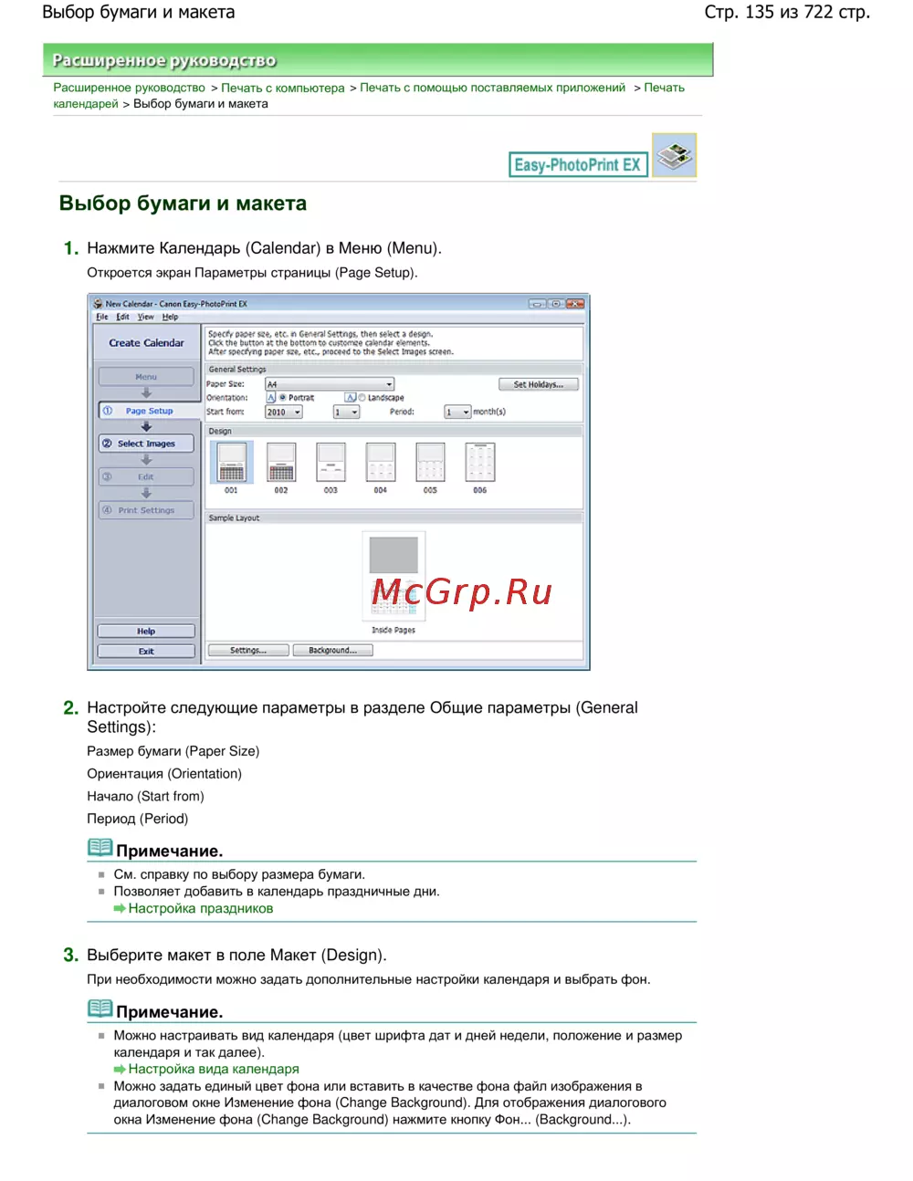Canon Pixma MP 272 — как выбрать бумагу и макет для печати календарей [135/722]