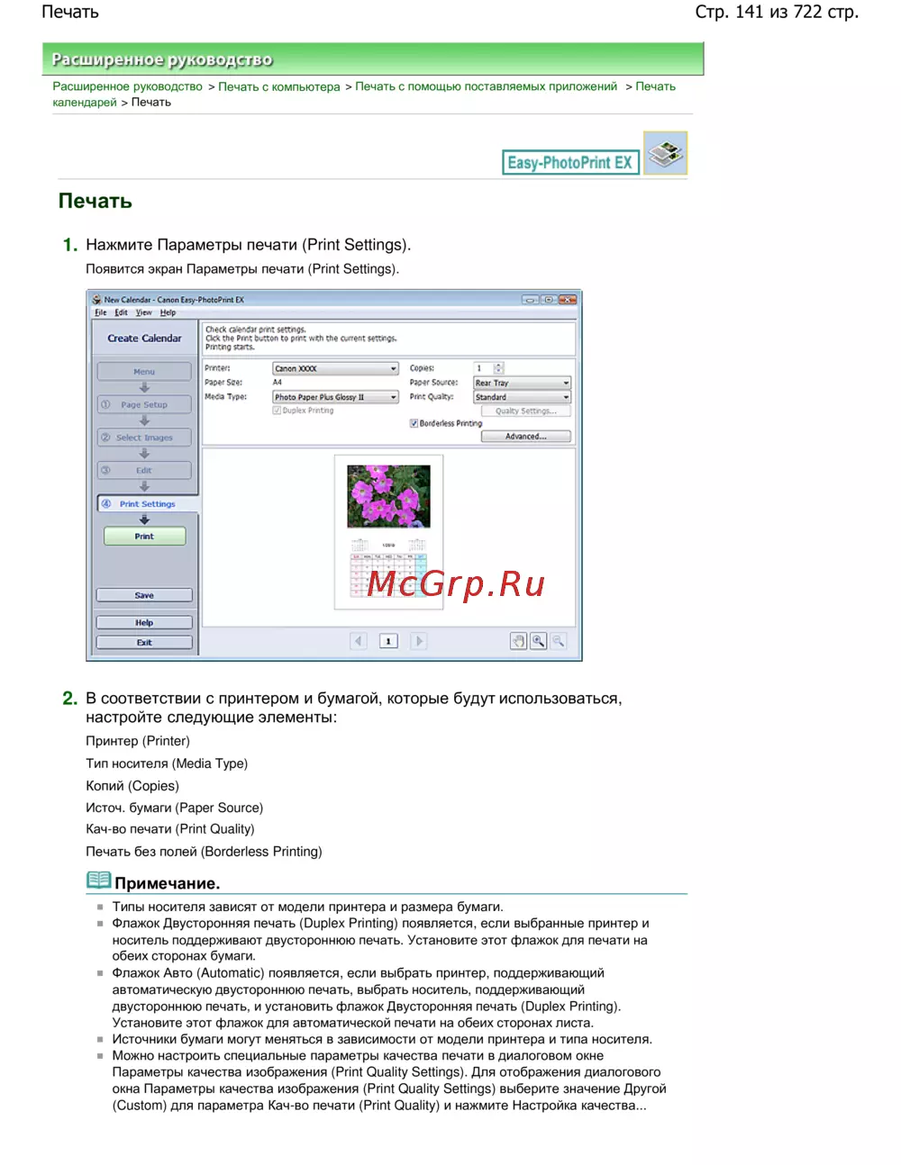 Canon Pixma MP 272 — печать календарей: подробное руководство по настройке [141/722]