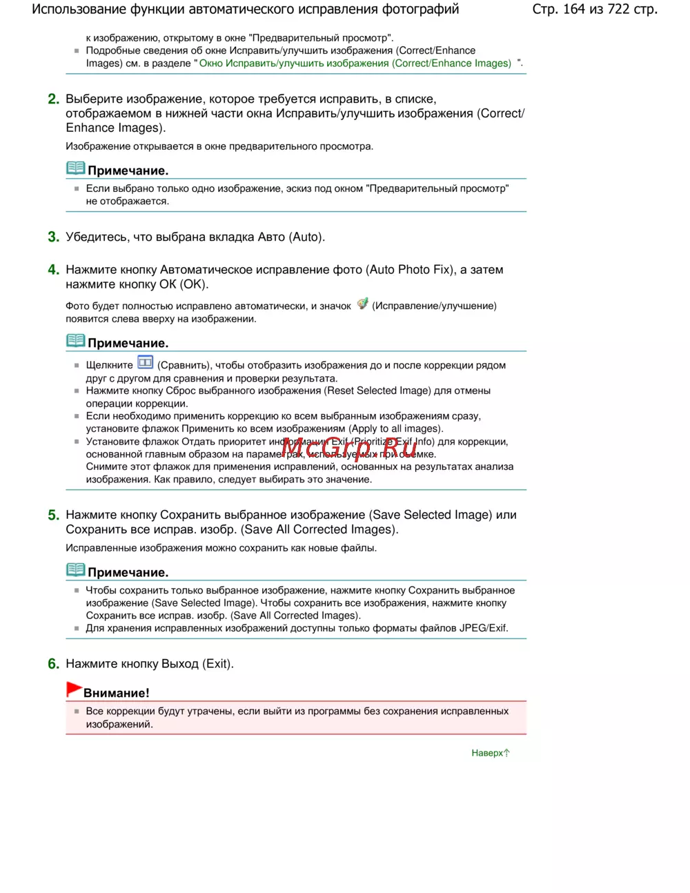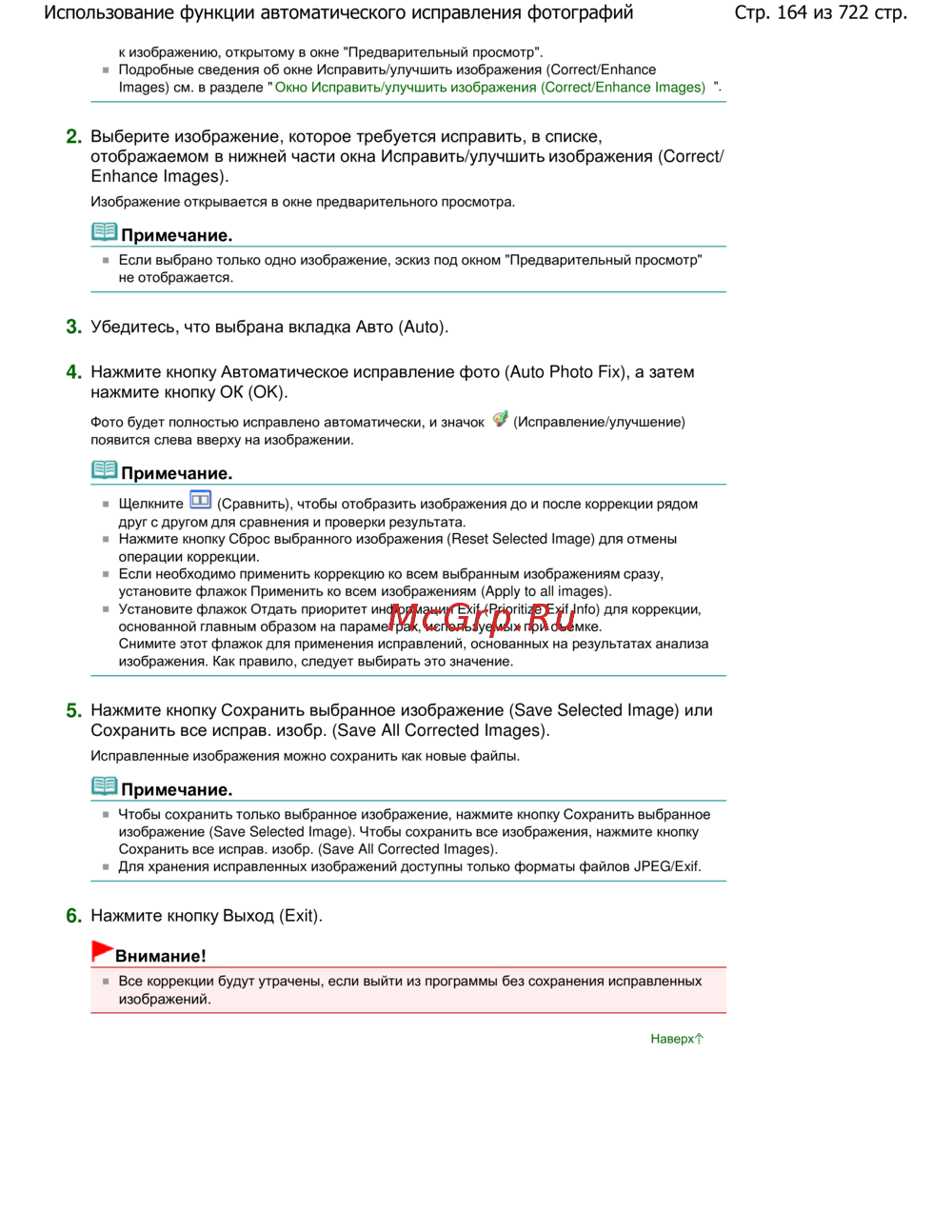 Стр. 164 из 722 стр.Использование функции автоматического исправления фотографий