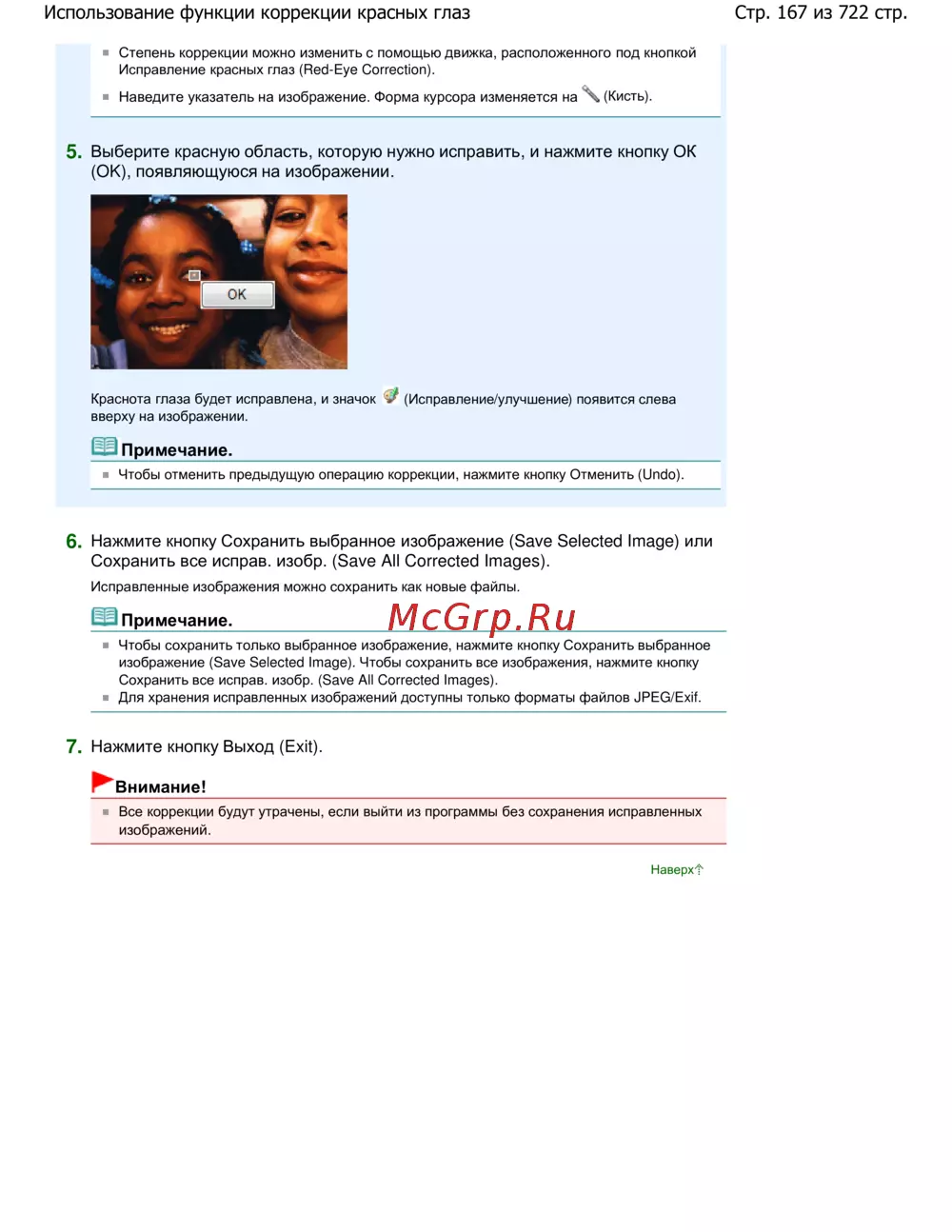 Стр. 167 из 722 стр.Использование функции коррекции красных глаз