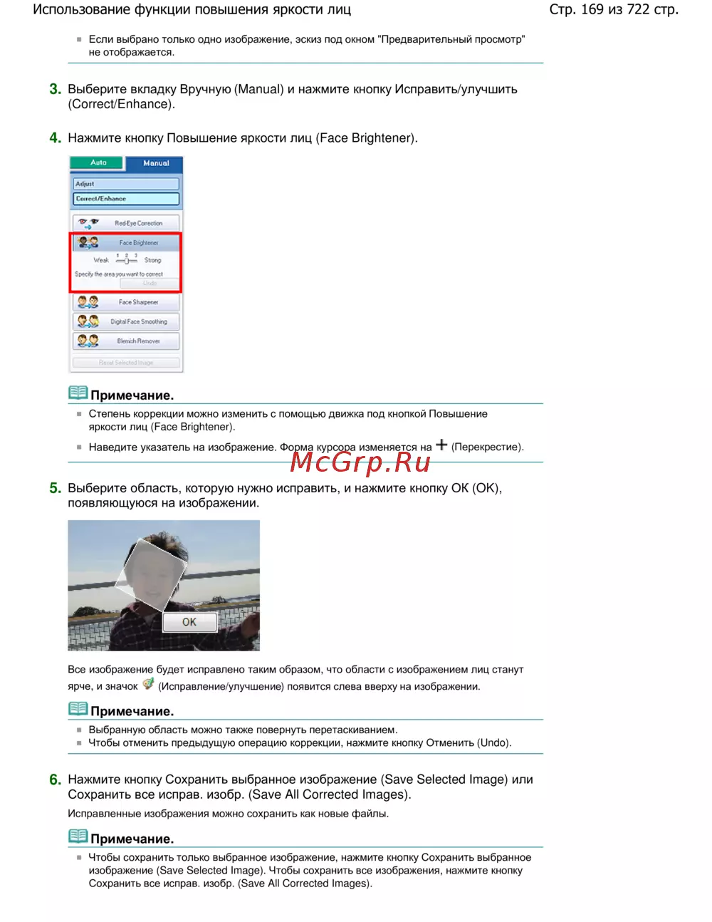 Стр. 169 из 722 стр.Использование функции повышения яркости лиц