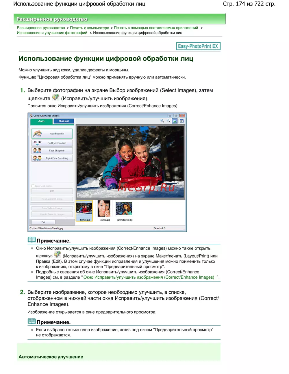 Стр. 174 из 722 стр.Использование функции цифровой обработки лиц