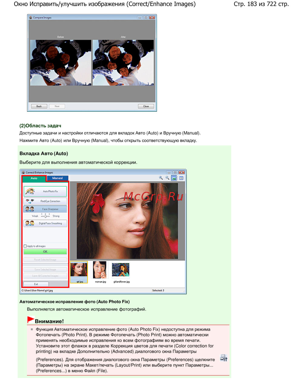 Стр. 183 из 722 стр.Окно Исправить/улучшить изображения (Correct/Enhance Images)
