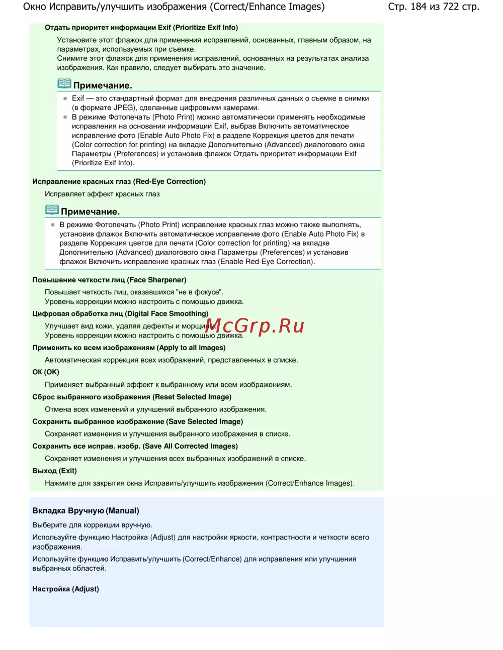 Стр. 184 из 722 стр.Окно Исправить/улучшить изображения (Correct/Enhance Images)