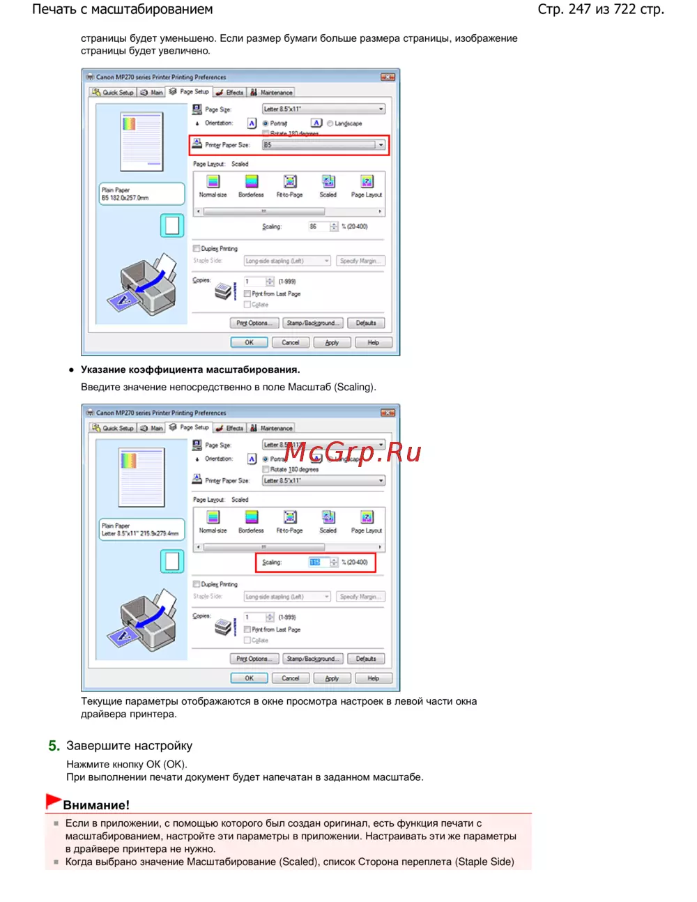 Canon Pixma MP 272 — настройка печати с масштабированием: руководство и советы [247/722]