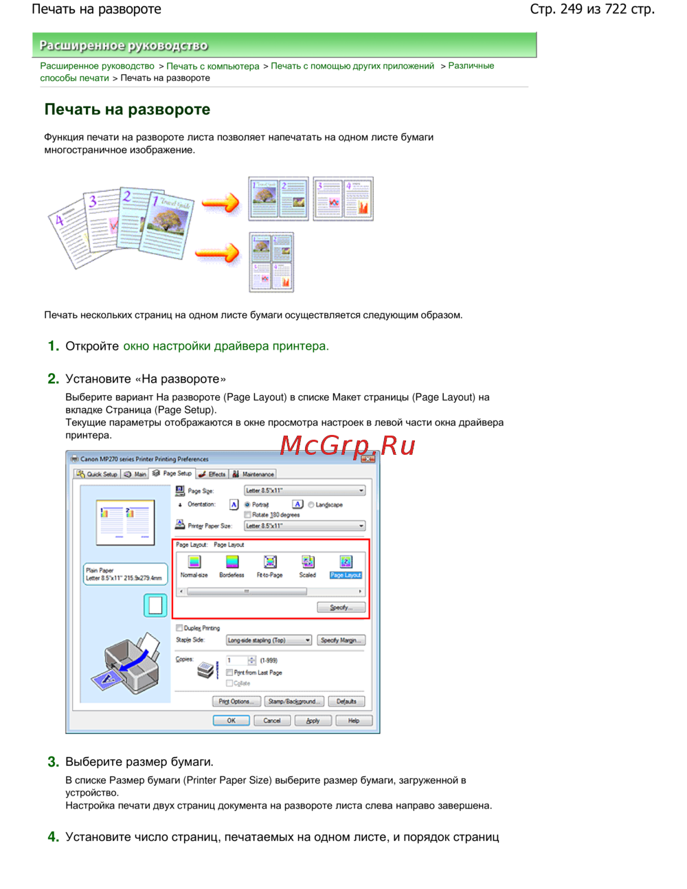 Canon Pixma MP 272 — печать на развороте: как напечатать несколько страниц на одном листе [249/722]