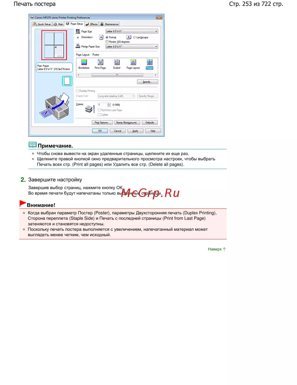 Canon Pixma MP 272 — как настроить печать постера и выбрать страницы для печати [253/722]