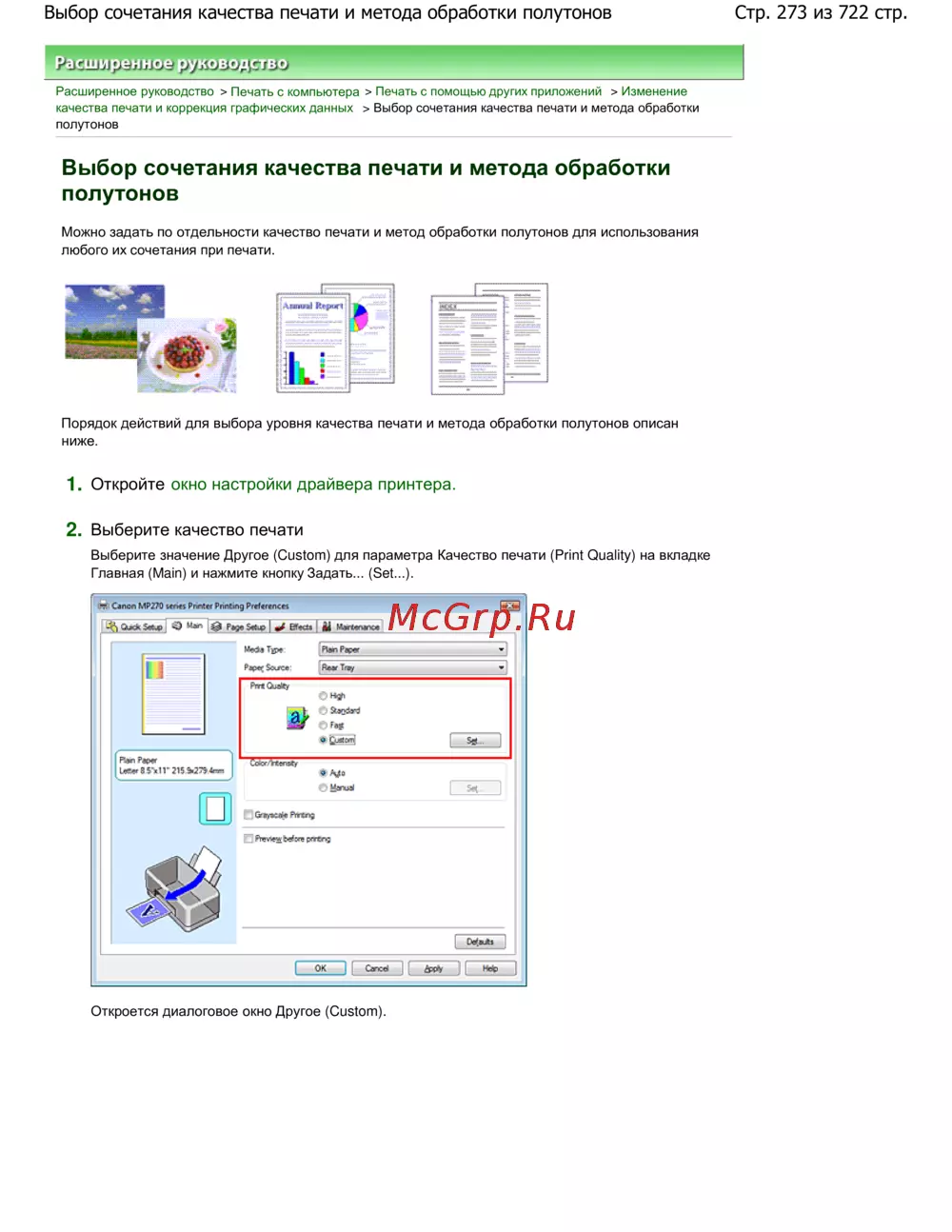Canon Pixma MP 272 — как изменить качество печати и обработку полутонов [273/722]