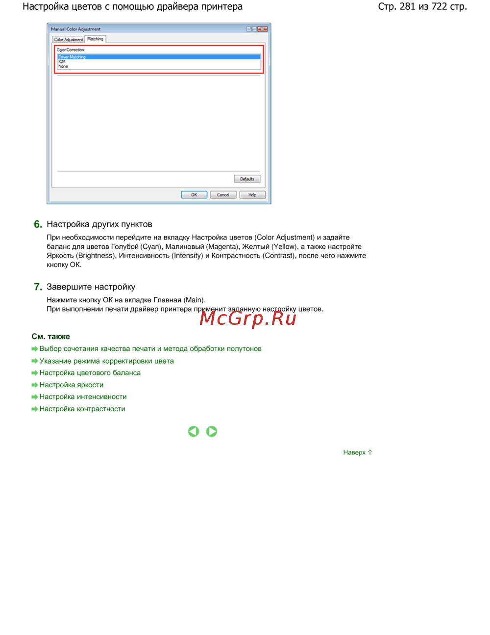 Стр. 281 из 722 стр.Настройка цветов с помощью драйвера принтера