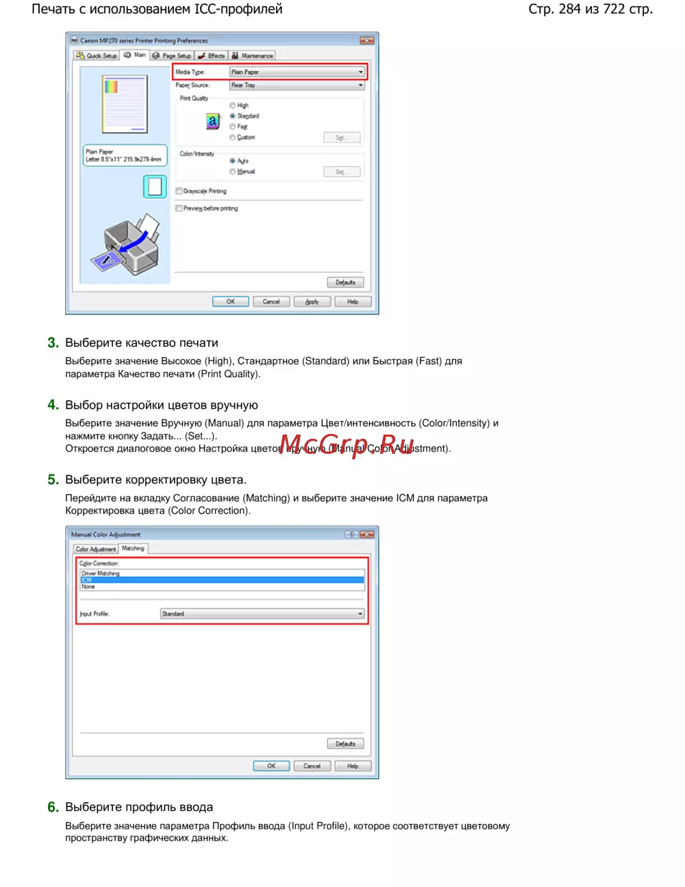 Canon Pixma MP 272 — как выбрать настройки печати и цветокоррекцию [284/722]