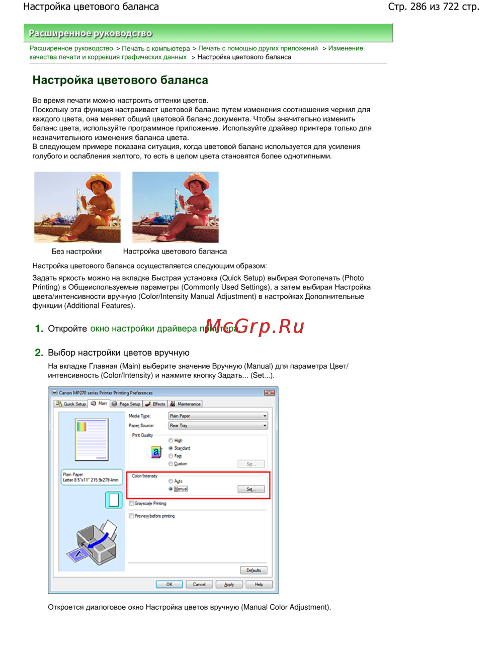 Canon Pixma MP 272 — настройка цветового баланса при печати: инструкция [286/722]