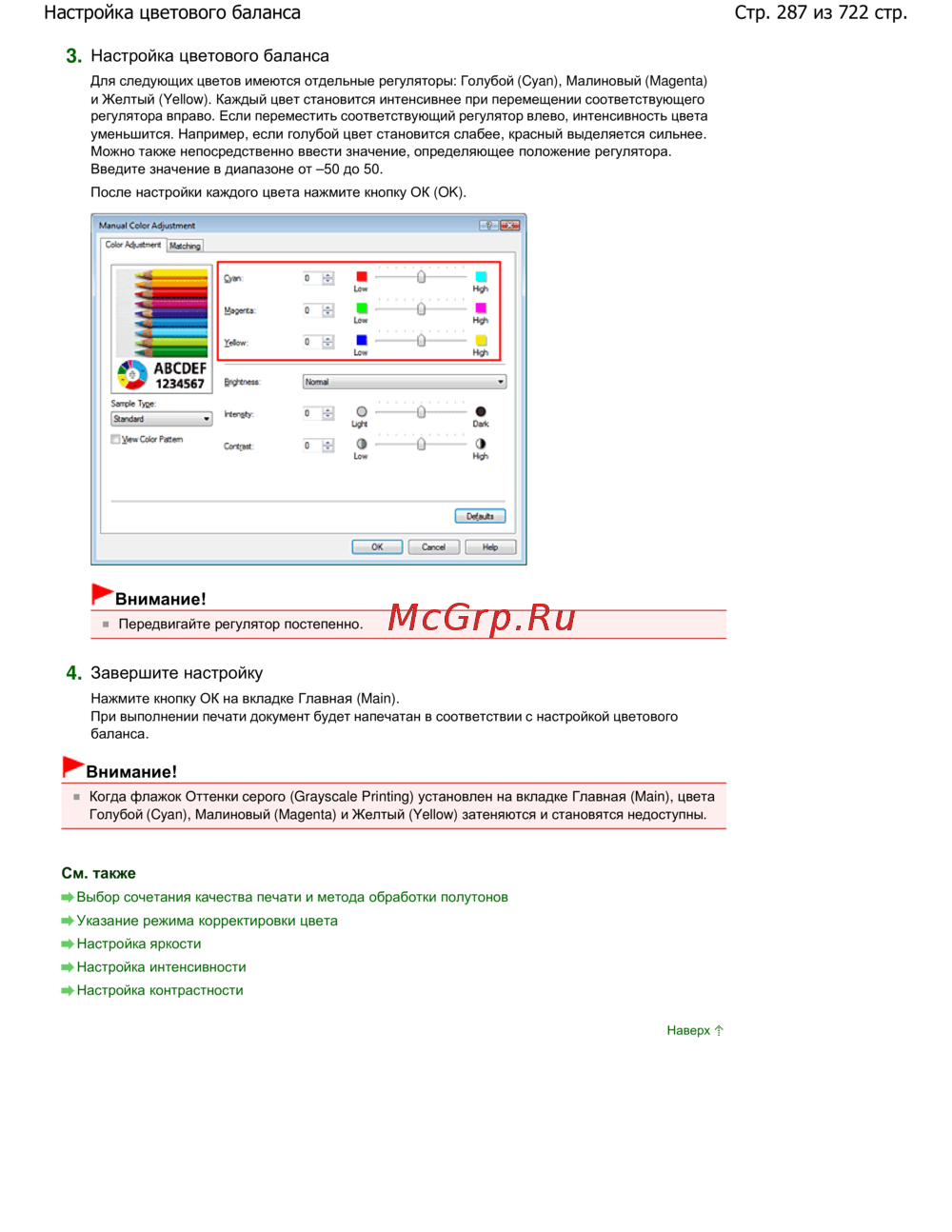 Стр. 287 из 722 стр.Настройка цветового баланса