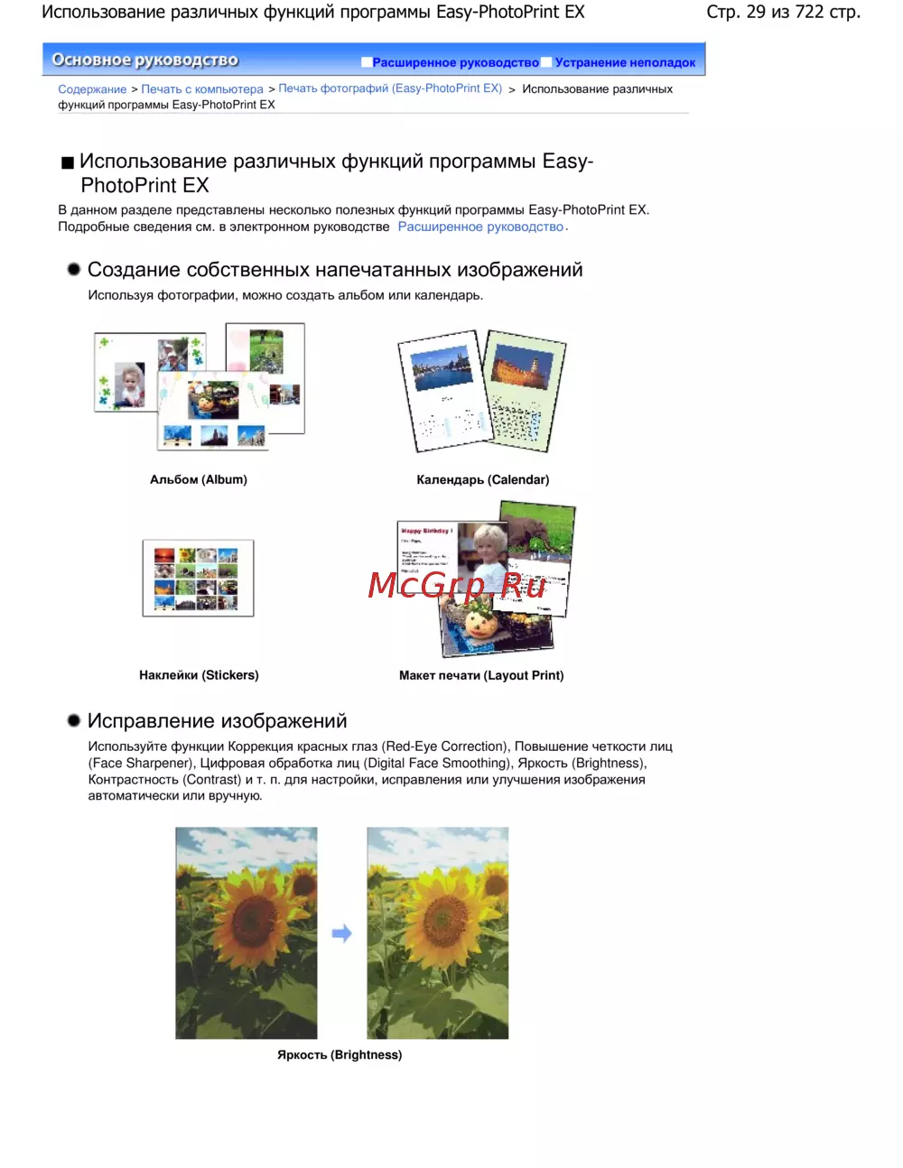 Стр. 29 из 722 стр.Использование различных функций программы Easy-PhotoPrint EX