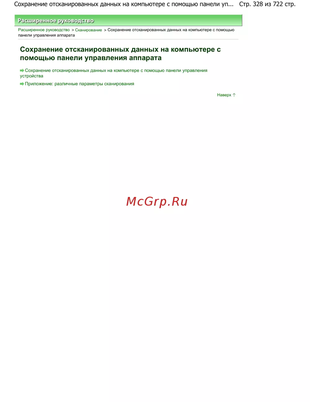 Стр. 328 из 722 стр.Сохранение отсканированных данных на компьютере с помощью панели уп...