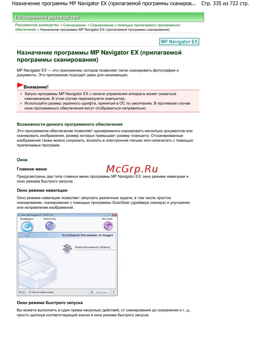 Стр. 335 из 722 стр.Назначение программы MP Navigator EX (прилагаемой программы сканиров...