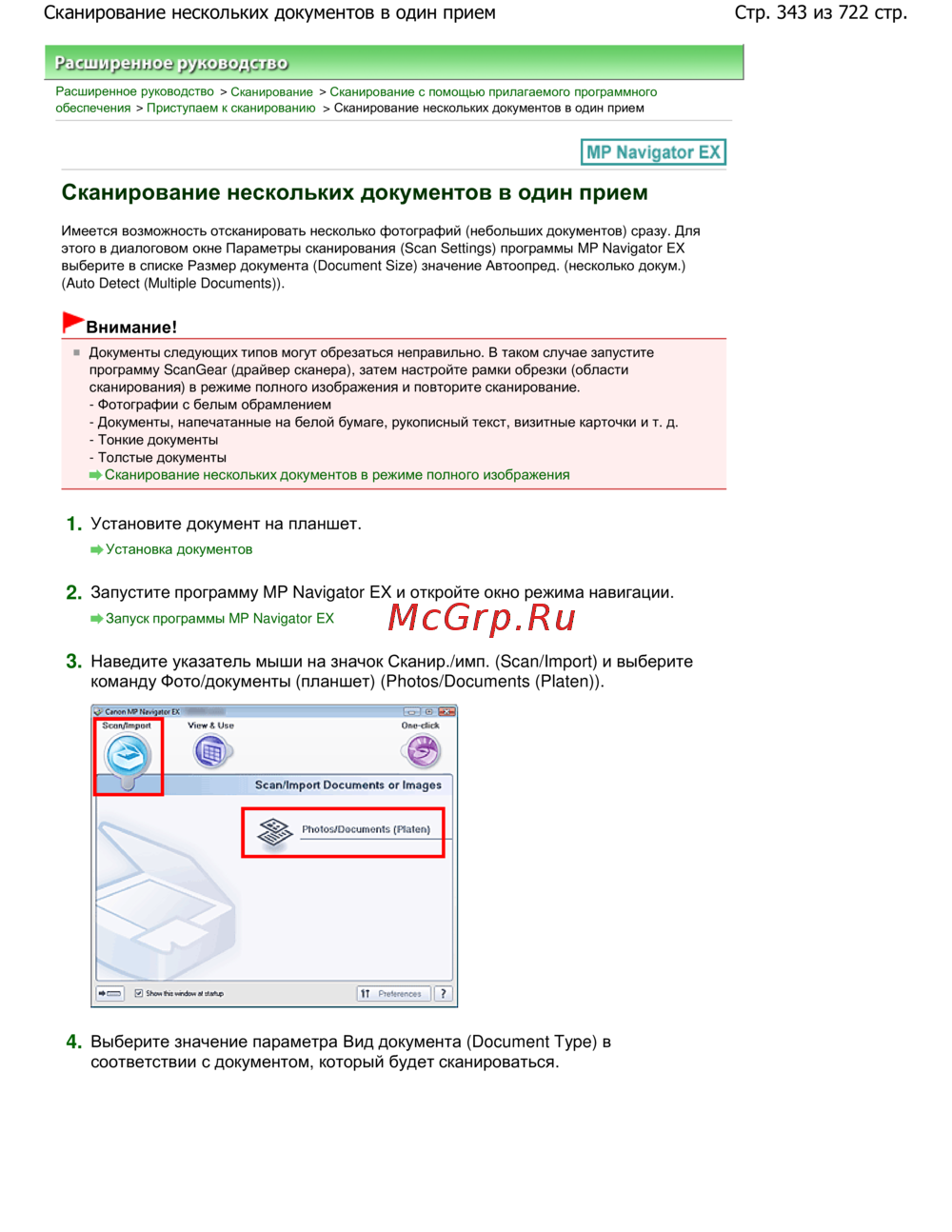 Стр. 343 из 722 стр.Сканирование нескольких документов в один прием