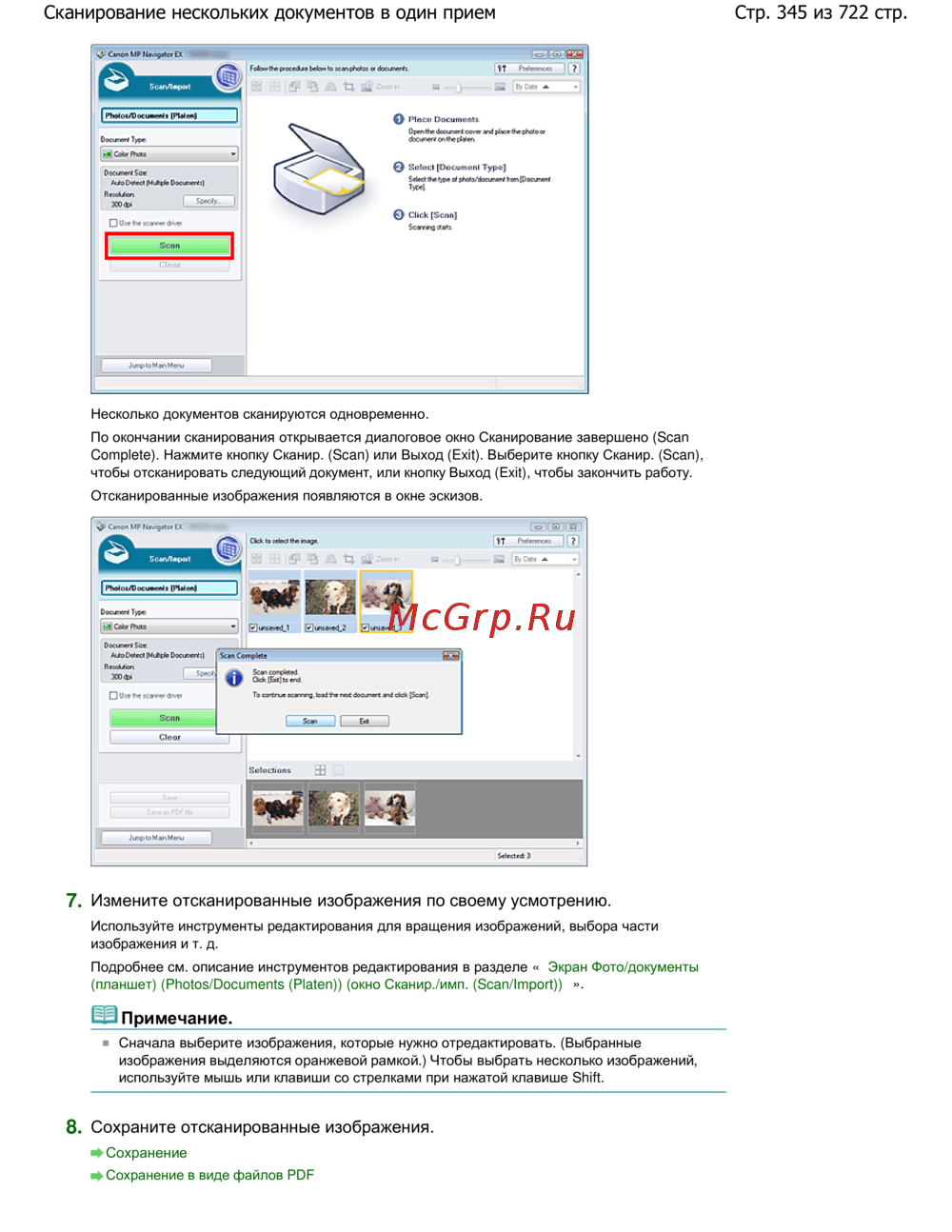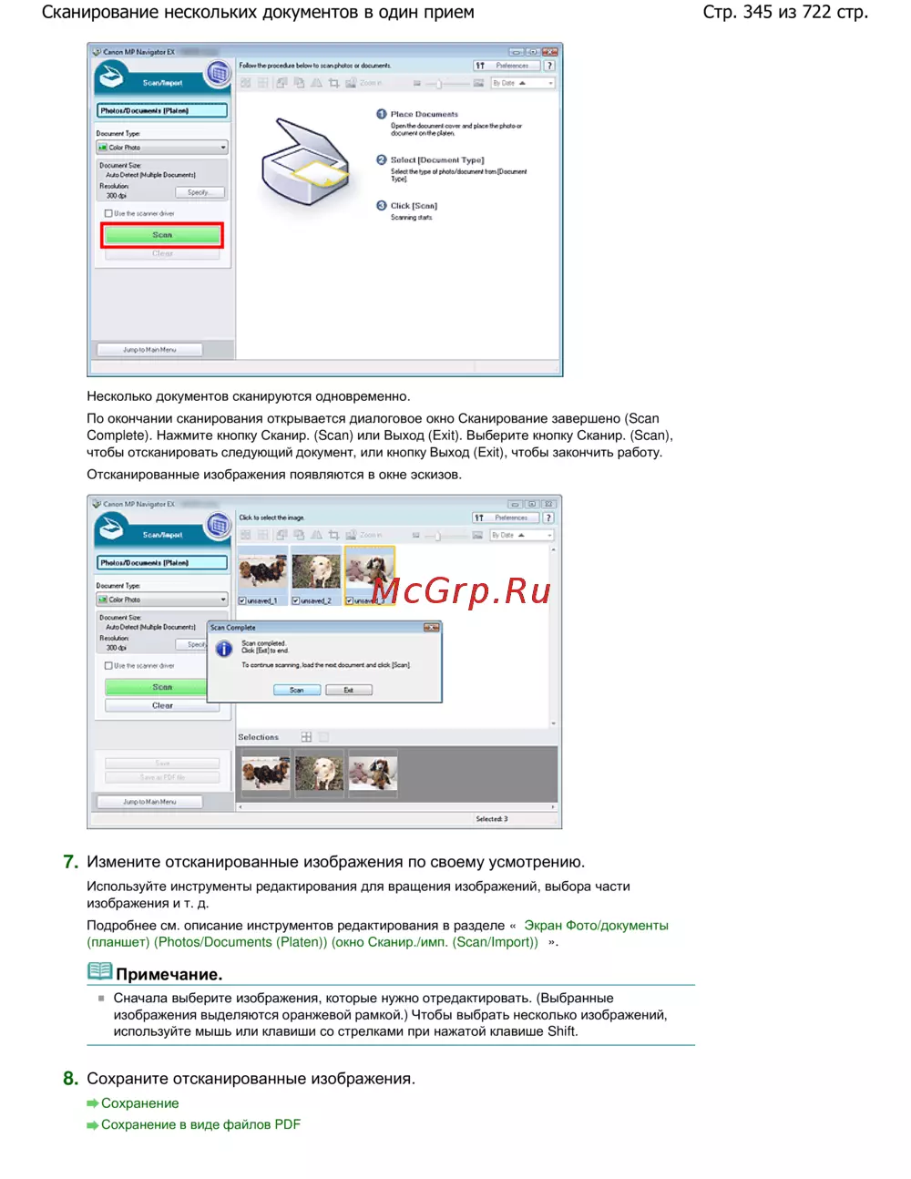 Стр. 345 из 722 стр.Сканирование нескольких документов в один прием