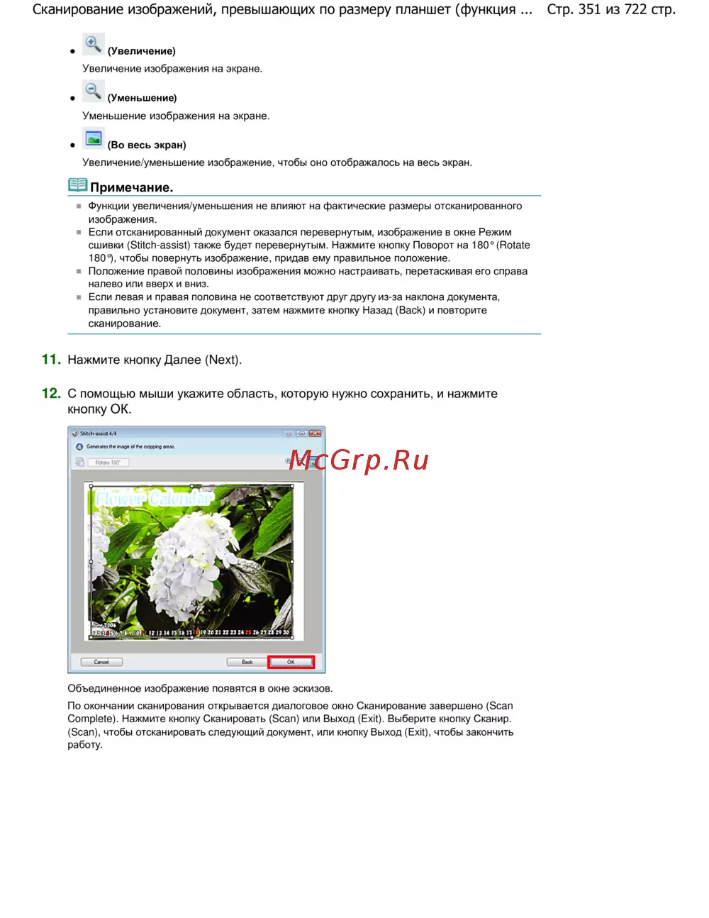 Стр. 351 из 722 стр.Сканирование изображений, превышающих по размеру планшет (функция ...