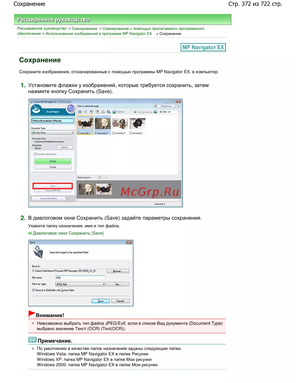 Canon Pixma MP 272 — как сохранить изображения из MP Navigator EX на компьютер: пошаговое руководство [372/722]
