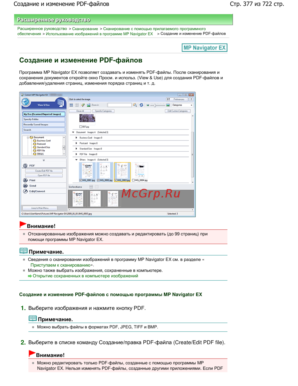 Программа MP Navigator EX позволяет создавать и изменять PDF-файлы. После сканирования и