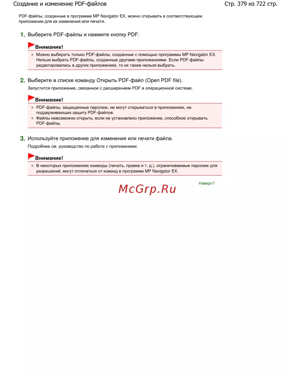 PDF-файлы, созданные в программе MP Navigator EX, можно открывать в соответствующем
