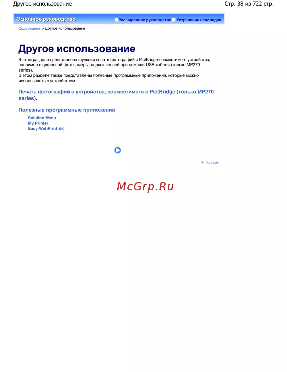 - Стр 1 из 722 стр canon mp270 series mp250 series электронное руководство p.1
