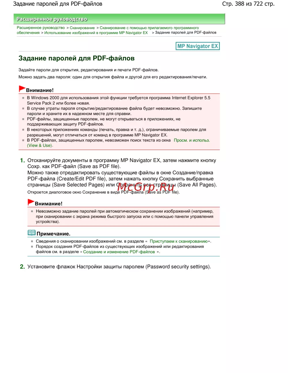 Canon Pixma MP 272 — как задать пароли для PDF-файлов: полное руководство [388/722]
