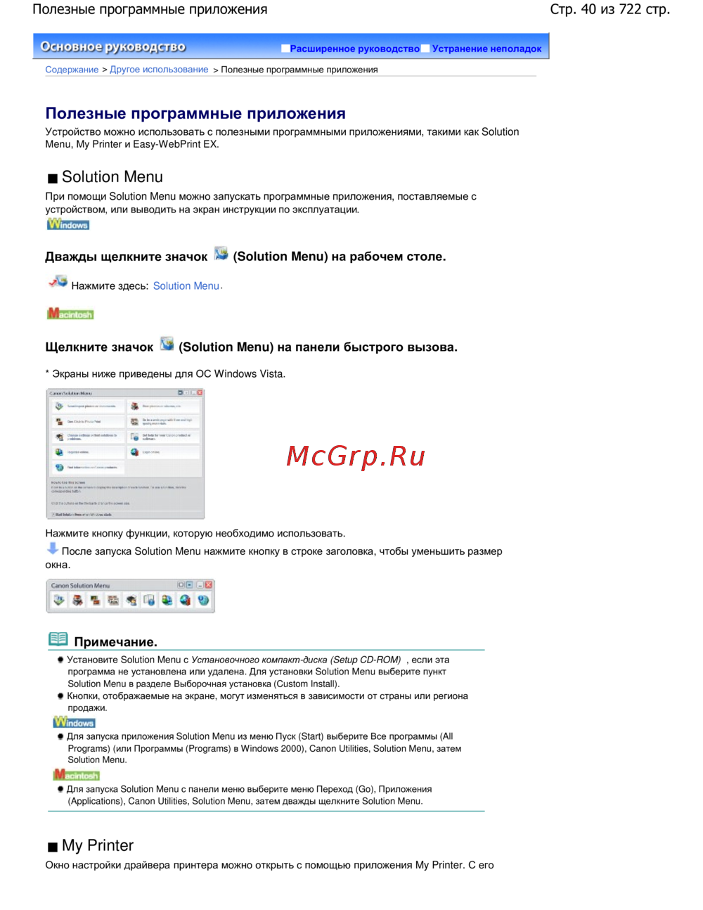 Canon Pixma MP 272 — полезные программные приложения для принтера: Solution Menu и My Printer [40/722]