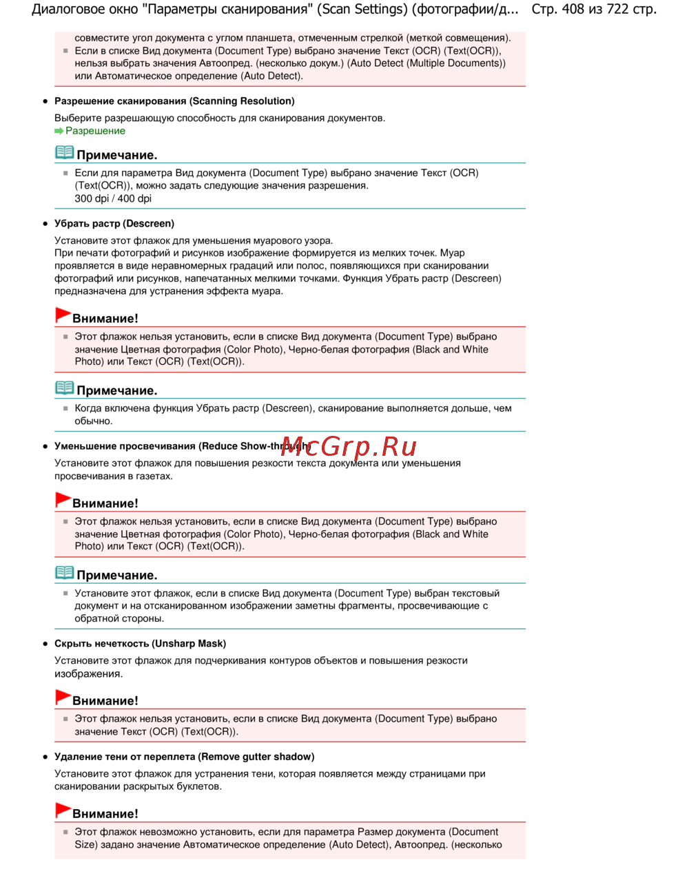 Стр. 408 из 722 стр.Диалоговое окно "Параметры сканирования" (Scan Settings) (фотографии/д...