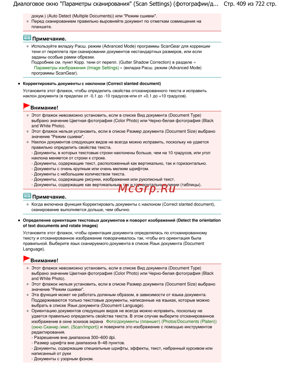 - Одновременное сканирование небольших документов p.719