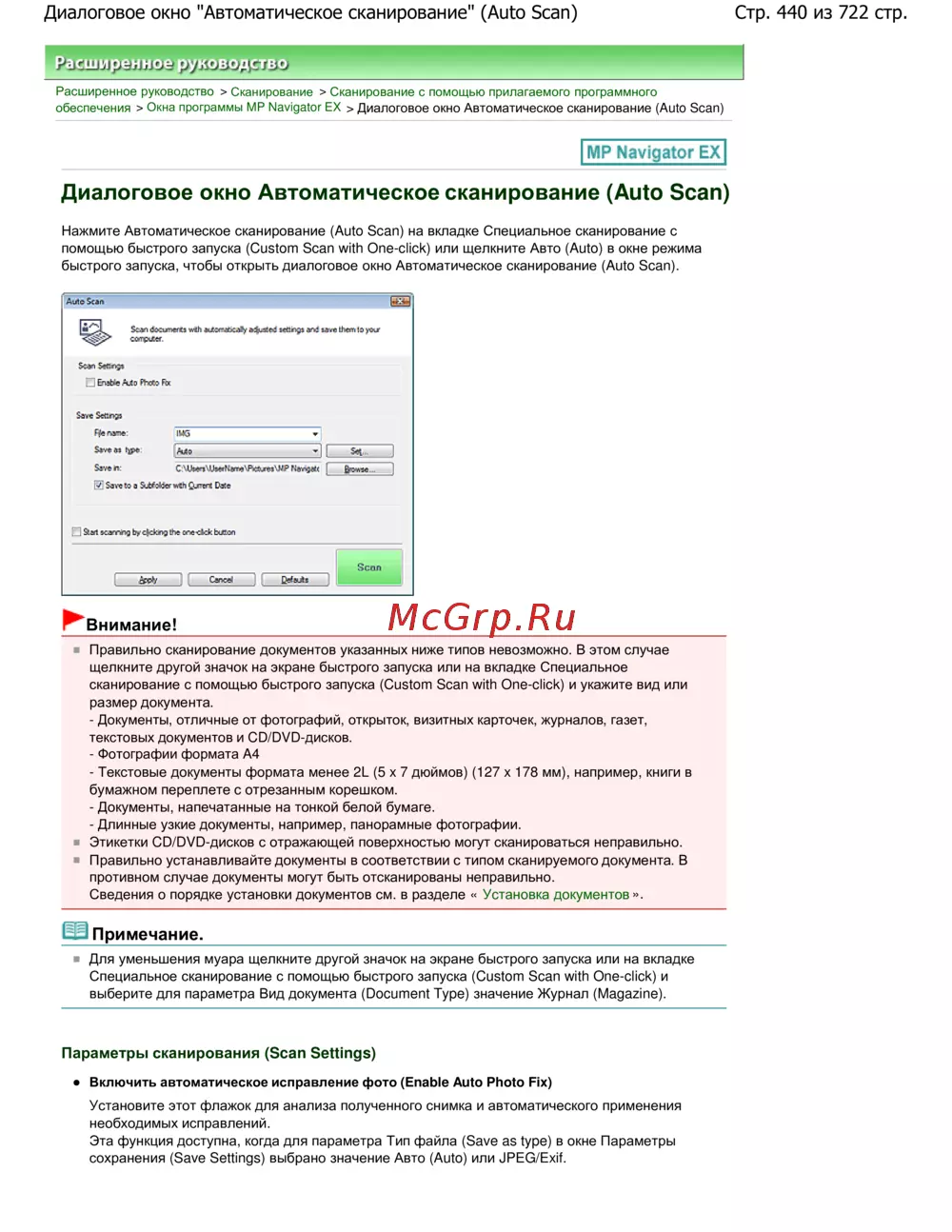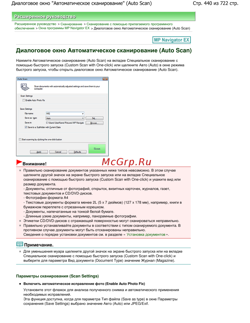 Стр. 440 из 722 стр.Диалоговое окно "Автоматическое сканирование" (Auto Scan)