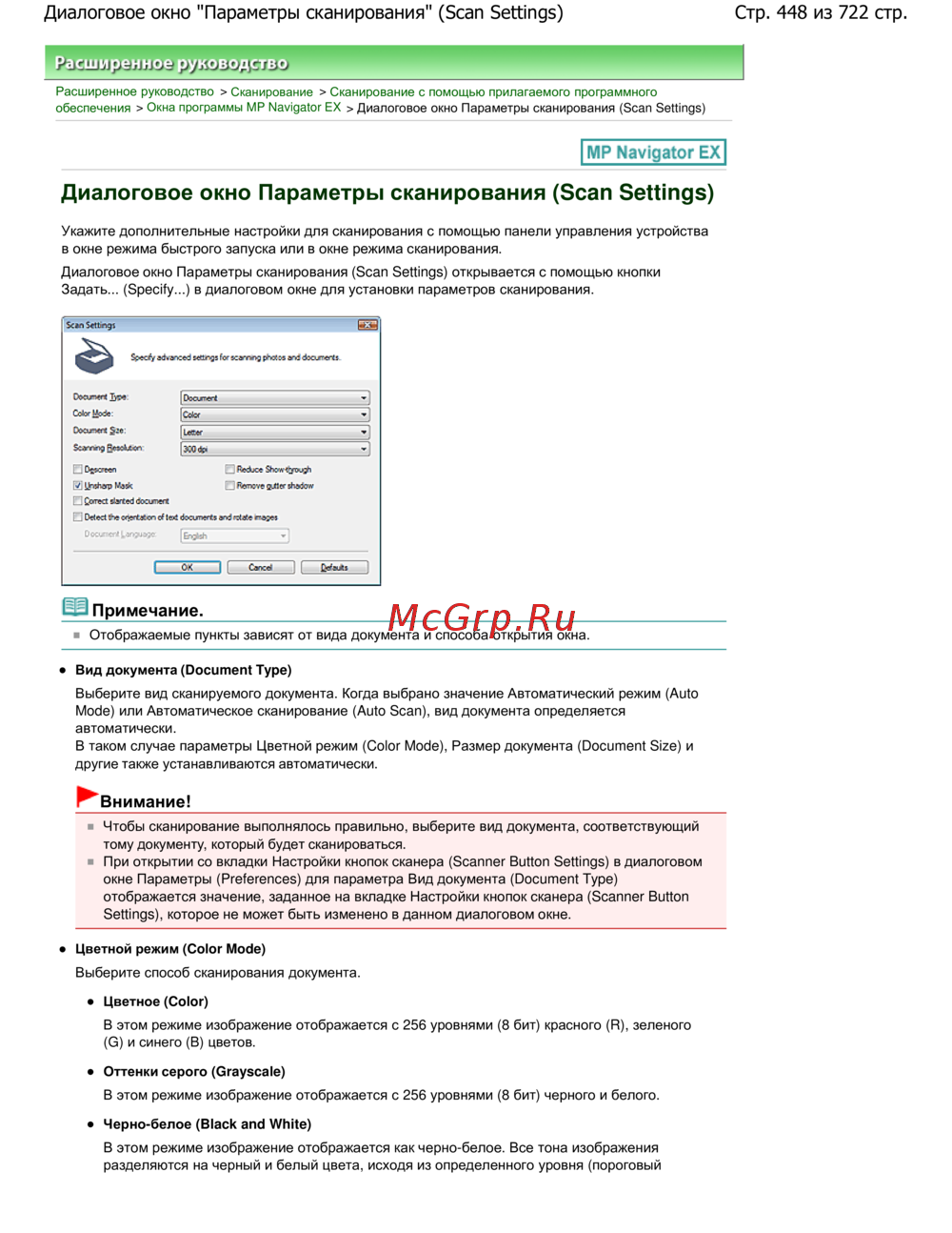 Canon Pixma MP 272 — настройки сканирования в ПО MP Navigator EX: руководство и параметры [448/722]