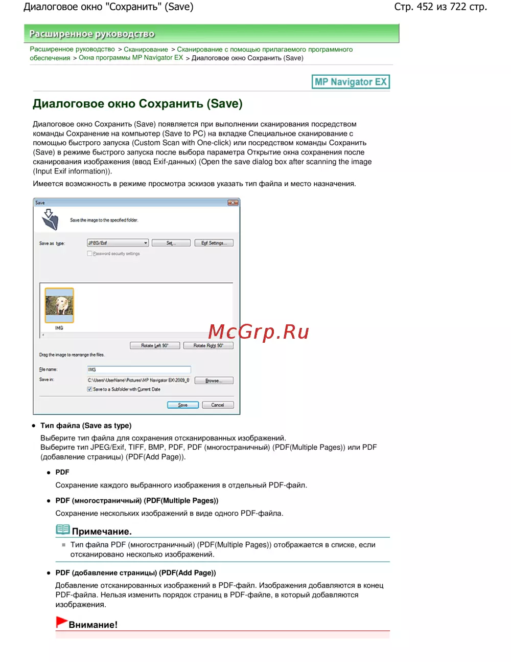 Canon Pixma MP 272 — руководство по сохранению сканированных изображений в программном обеспечении [452/722]