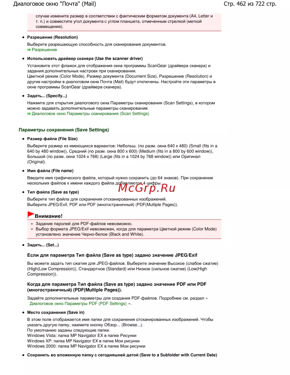 Canon Pixma MP 272 — настройки сканирования документов: разрешение, размер, сохранение PDF [462/722]