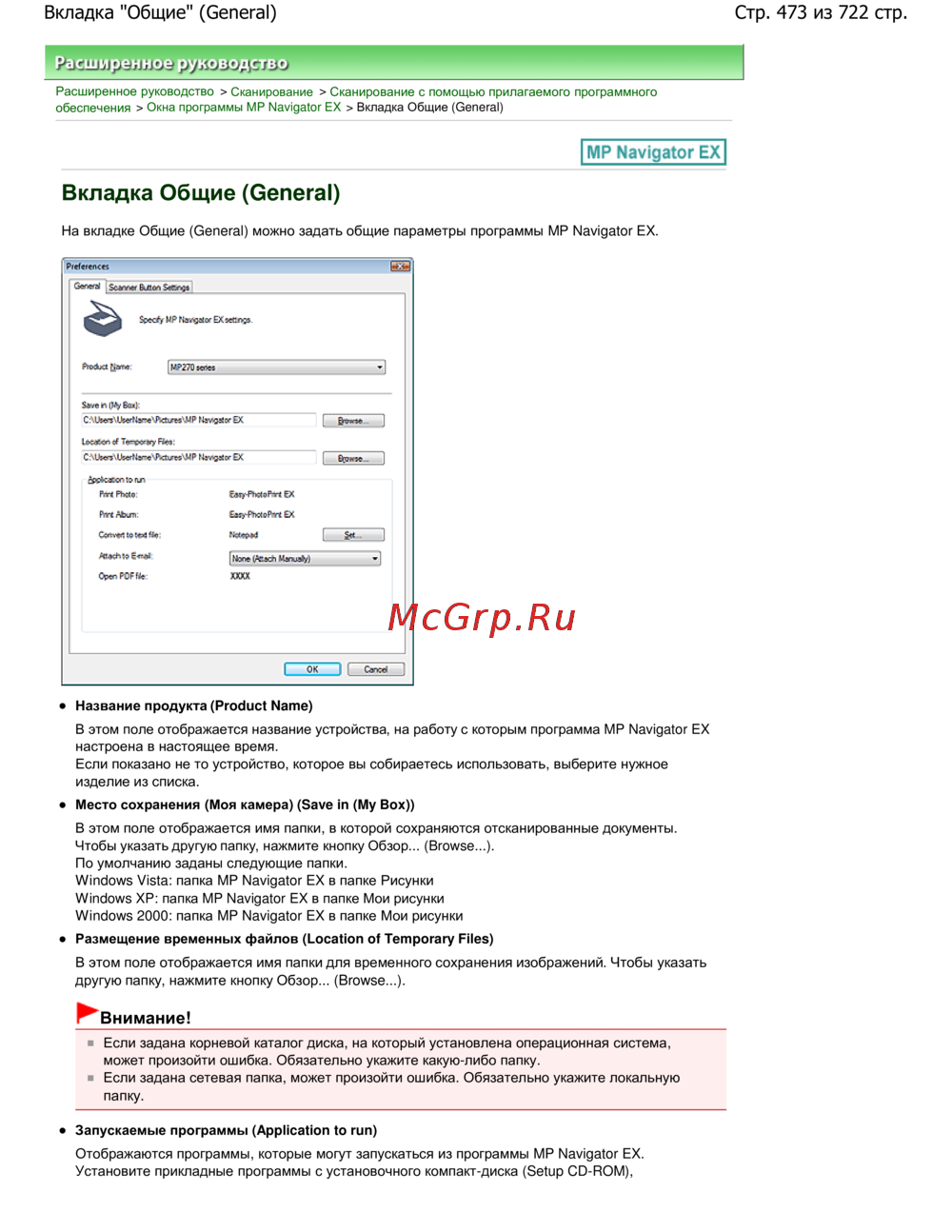 Canon Pixma MP 272 — настройка параметров программы MP Navigator EX: вкладка General [473/722]